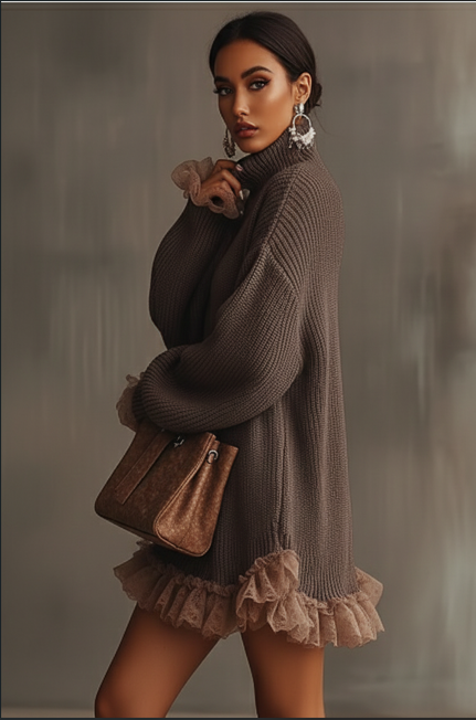 Looking for a winter dress that feels warm, soft, and effortlessly chic? The Sabrina High-Neck Ruffled Mini Dress blends cozy comfort with refined feminine charm. With its oversized silhouette, graceful ruffled hem, and elevated high neckline, Sabrina brings softness and sophistication to every cool-season moment—from relaxed afternoons to winter gatherings.